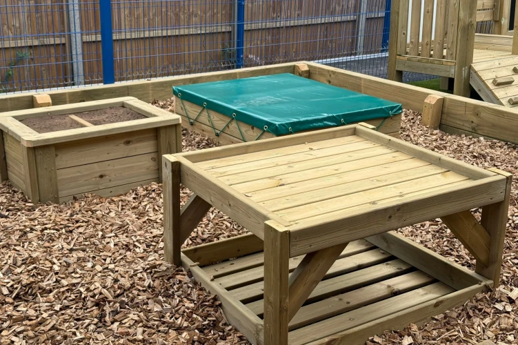 Playscenes take on a small world table is the perfect item for groups of children to gather around and engage in school play activities. Teachers can observe as children collect natural elements such as leaves branches and stone from the playground to create a variety of natural play ideas. Its a great wooden resource for early years or primary education to inspire collaborative teamwork and play.