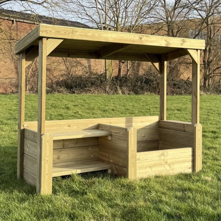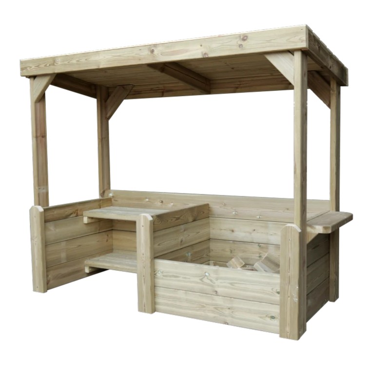 Take construction play to another level with Playscene's Outdoor Construction Play Hut! Fantastic for collaborative learning and play, children can put their creative abilities to good use as they build, play and construct. With a pit full of blocks, shelving and a work surface all under one roof, this robust hut will keep early years children engaged outdoors for hours on end! Assorted timber blocks included.