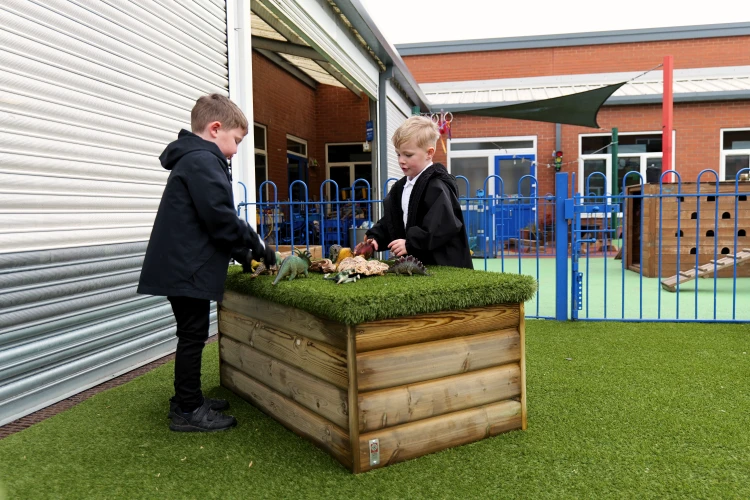 Finalise your outdoor area with Playscenes Grass Topped Bench with Storage. Designed to encourage group activities, early years children can sit, talk, and play as they enhance their social and team-building skills. Utilise this robust resource to store small items and playground equipment, you can never have enough outdoor, school storage! Early years development is at the heart of all Playscene resources.