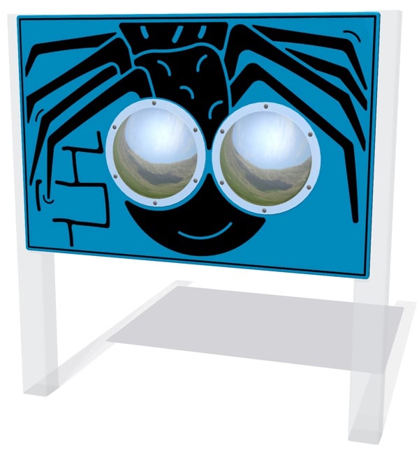 With the Zoom Bug Eyes Spider Play Panel, children can have fun imagining they are looking through the eyes of spiders while from the other side it looks like the spiders are coming out of the panel at you!