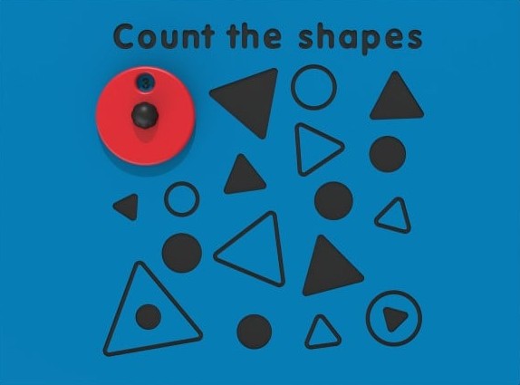 How many shapes can you see? Count the shapes using the rotating shape number disc with the Count the Shapes Play Panel. Constructed from HDPE, the graphics are engraved and is suitable for wall mounting. Perfect for the playground or play space.
