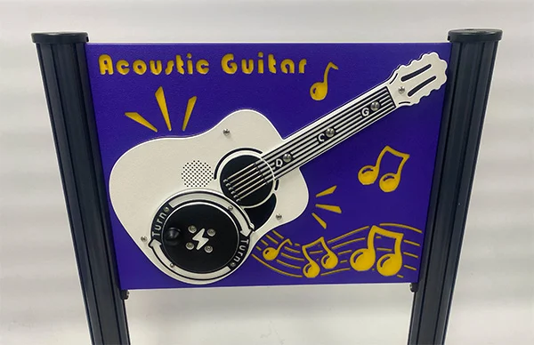 Get your friends dancing to some acoustic guitar using the RotoGen Guitar Play Panel. Strum or play the individual strings to listen. Turn the RotoGen rotor for longer to play for longer. Featuring RotoGen human powered energy, the play panel is constructed from a HDPE panel, the electronics are ultra-reliable, protected by a water and tamper resistant cover, while the electronic components are covered by a three year guarantee. The acoustic guitar chords play C, D and G.