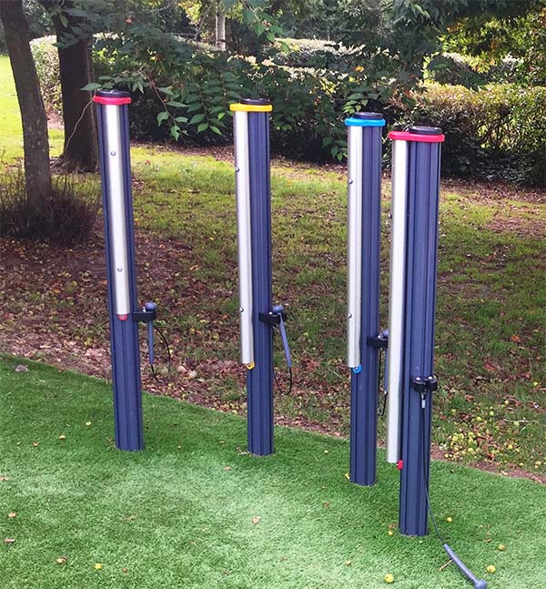 Individual chimes to make your own musical playground arrangement. The Virtuoso Multi Chimes 4 piece set features notes C4, E4, G4 and C5 all with their own rubber mallet and superb sound. Virtuoso Musical Multi Chimes (4 Piece Set) includes 4 tuned notes C-C mounted individually on posts.